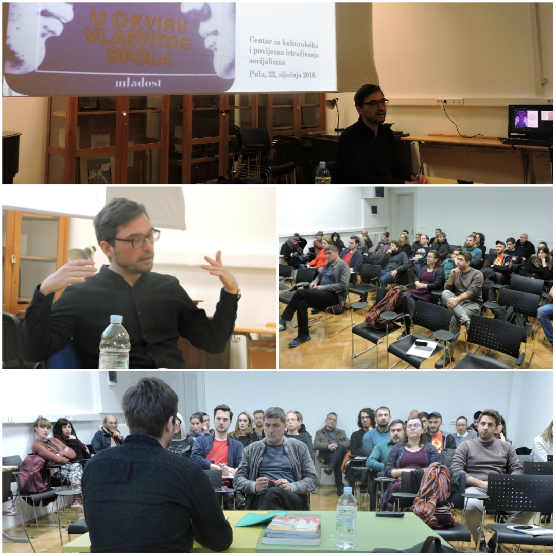 Siječanjski gost CKPIS-a bio je Franko Dota koji je doktorirao modernu i suvremenu povijest na Filozofskom fakultetu Sveučilišta u Zagrebu, obranivši 2017. disertaciju Javna i politička povijest muške homoseksualnosti u socijalističkoj Hrvatskoj (1945-1989). Trenutno je vanjski suradnik na Filozofskom fakultetu u Rijeci gdje predaje kolegije iz historijske metodologije i teorije te povijesti historiografije. Predavanje pod naslovom Na raskršću tradicije i seksualne modernosti: muška homoseksualnost u socijalističkoj Jugoslaviji održao je u ponedjeljak, 22. siječnja 2018., u 17 sati u čitaonici (dvorana 11) fakultetske zgrade u Ronjgovoj 1.