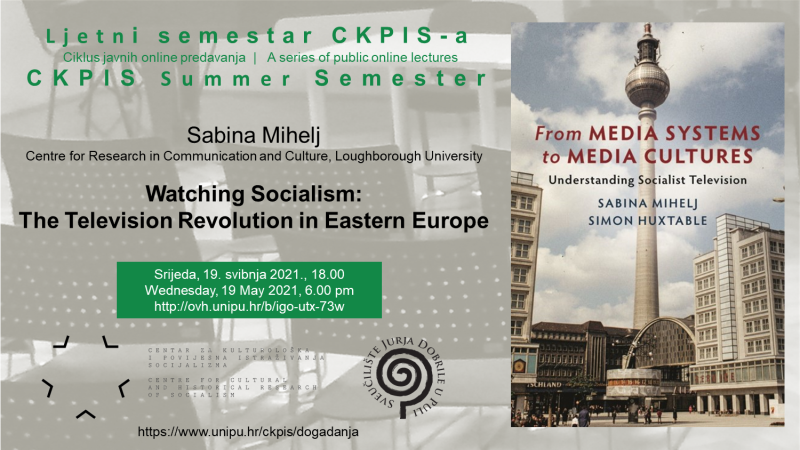 U Ljetnom semestru CKPIS-a ovoga tjedna gostuje Sabina Mihelj, profesorica na Sveučilištu u Loughboroughu u Velikoj Britaniji. Njezino predavanje temeljit će se na rezultatima nedavno zaključenog istraživačkog projekta Screening Socialism, uključujući i monografiju From Media Systems to Media Cultures: Understanding State Socialist Television (2018). Kulturološka analiza medija te kulturna i društvena povijest televizije otkrivaju na koji je način televizijski program oblikovao svakodnevicu u Istočnoj Njemačkoj, Poljskoj, Rumunjskoj, Sovjetskom Savezu i Jugoslaviji.