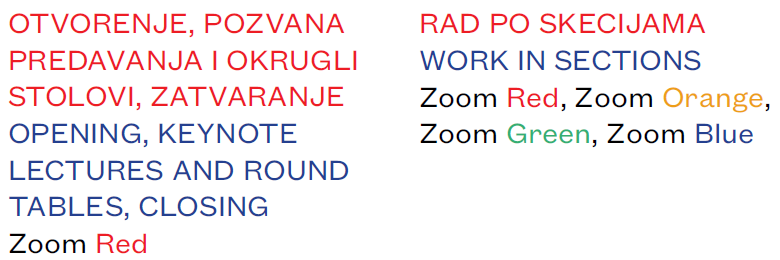 21.9.21. Ispričavamo se, izmijenjene su poveznice na narančastu, zelenu i plavu Zoom dvoranu. Ako ste se ranije registrirali, morate to učiniti ponovno za te tri dvorane. Promjene su također unesene u Knjigu sažetaka i program.