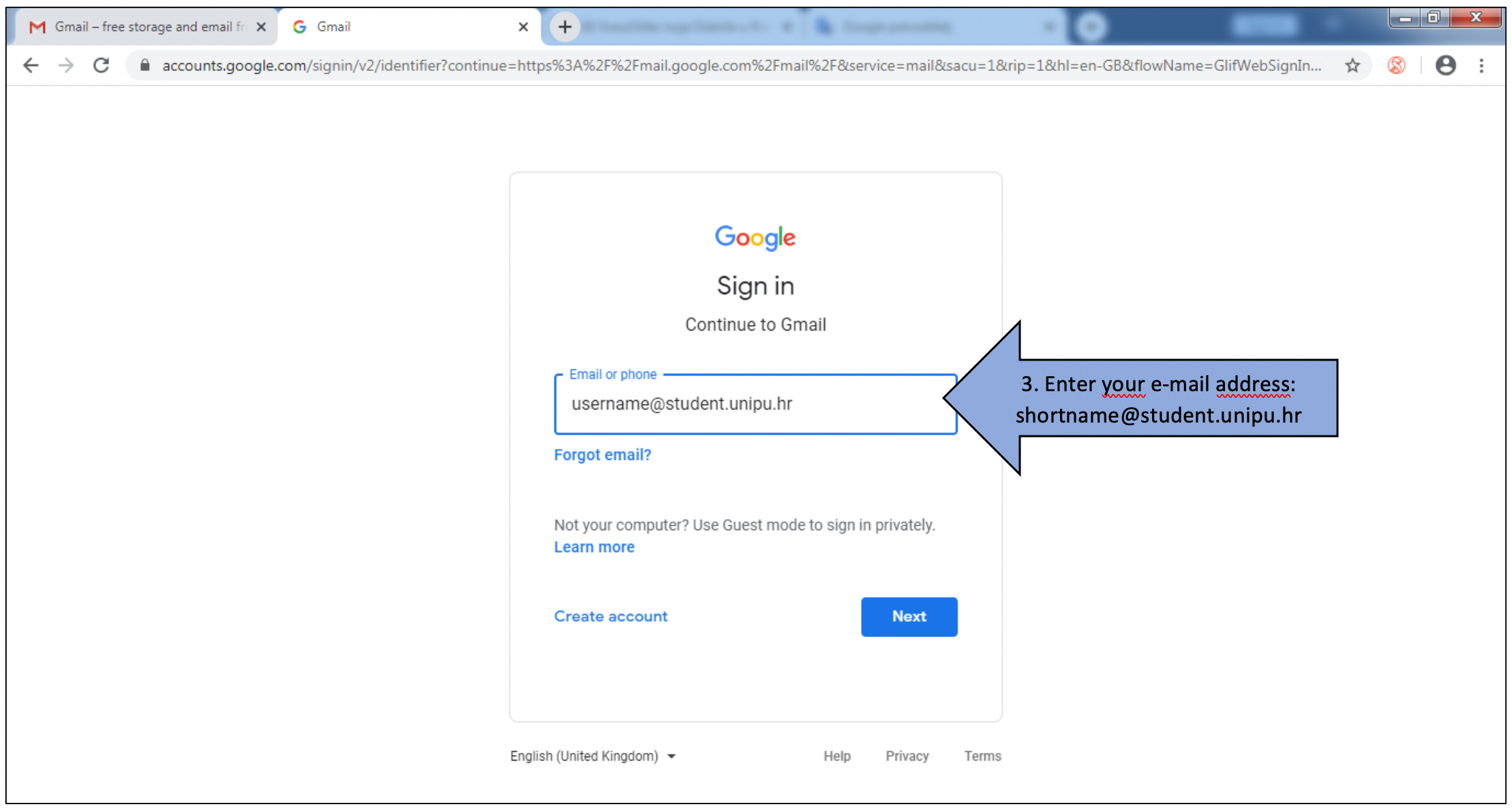 1. when you first need to enter your new e-mail address, type username@student.unipu.hr