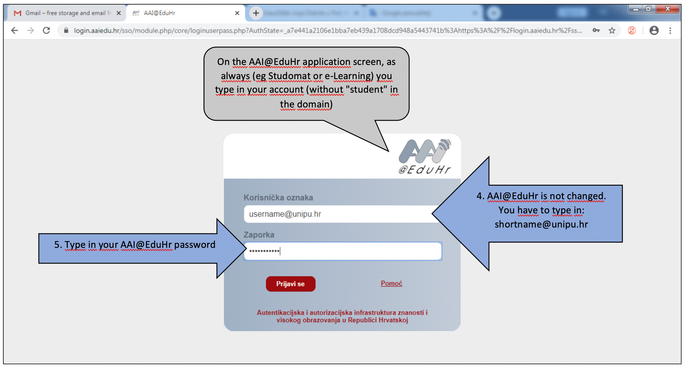 2. when you are asked what your AAI@EduHr identity is, you type username@unipu.hr